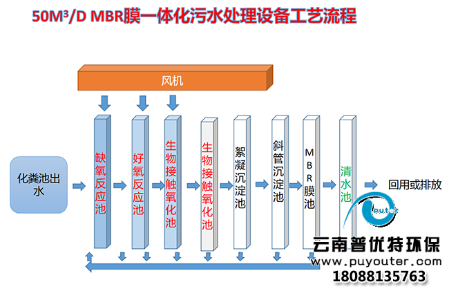 本方案拟采用目前在国内已开始广泛应用的膜处理技术,即固液分离型膜生物反应器(MBR)。采用膜技术 对 生活污水进行综合处理,保证污水达标排放。