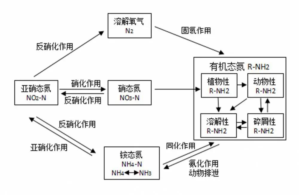 ②恢复正常pH值。控制pH值在7.5~8.0之间,因为硝化细菌一开始主要利用的是分子态氨氮(NH3),因此弱碱性可以促进硝化反应的进行。